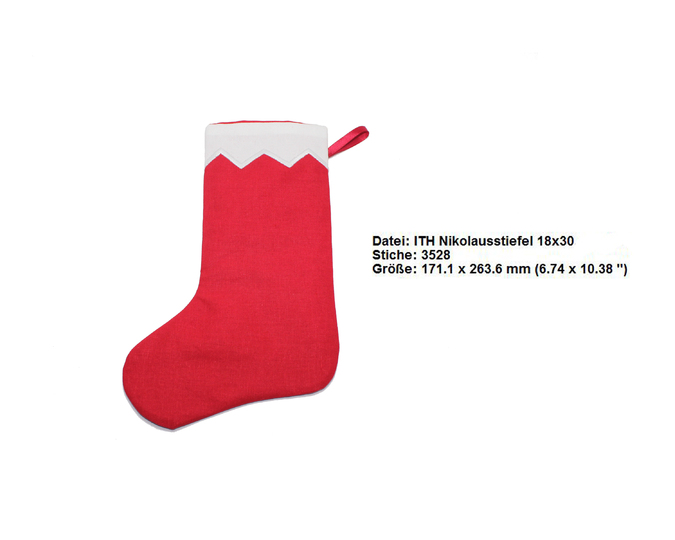 Stickdatei ITH Nikolausstiefel für den 18x30 Rahmen.