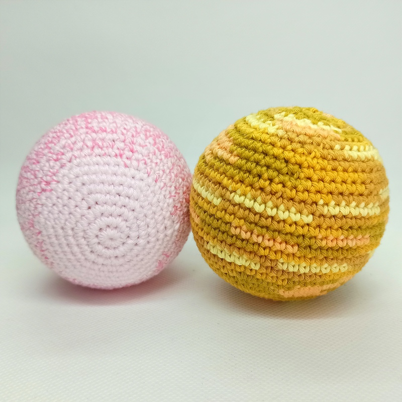 Die Größe ist ca 6cm, wenn du mit Baumwolle und Häkelnadel 2,5mm häkelst. Aber du kannst auch andere Wolle verwenden - Acrylwolle, Chenille Wolle...