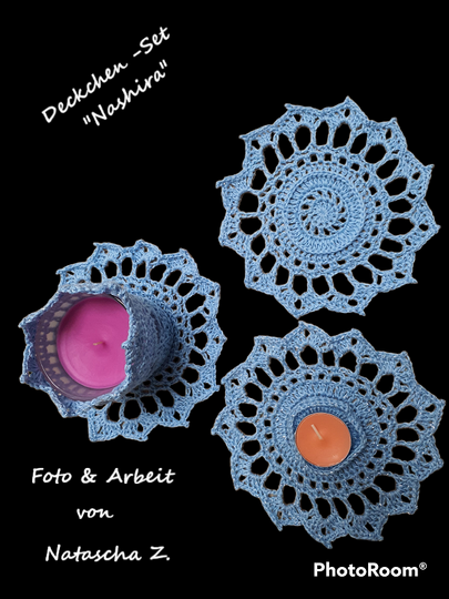 für das Deckchen / Glasuntersetze ca. 18cm im Durchmesser