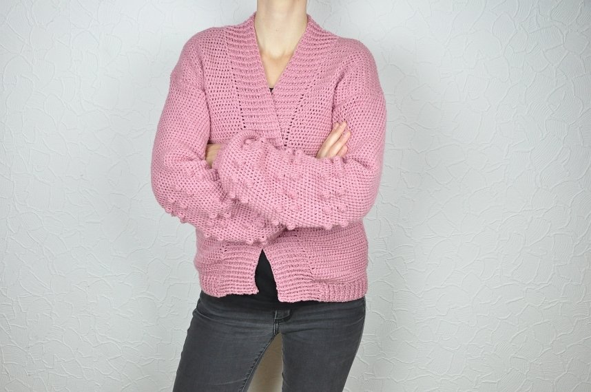 Die Anleitung umfasst 19 Seiten und Schritt für Schritt Erklärungen bis zur fertigen Jacke. Für einen kurzen Überblick über das Muster ist eine Häkelschrift hinterlegt. Das Muster wird auch einzeln bebildert erklärt.