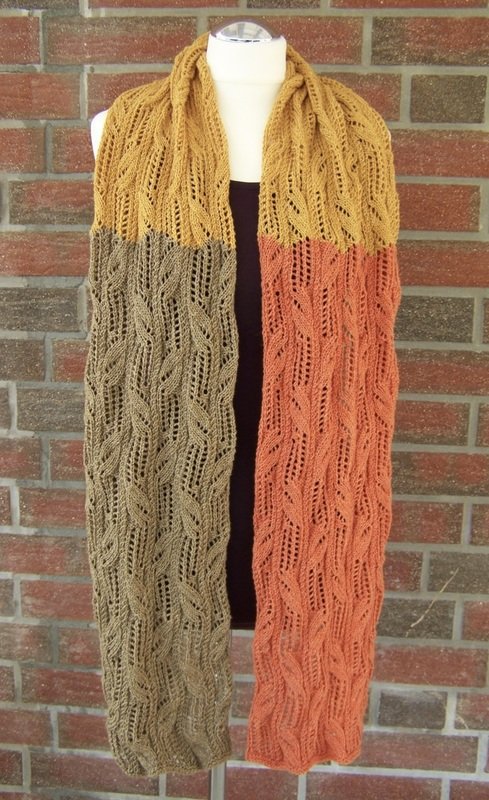 Die raffinierte Optik bekommt dieses schöne Accessoire durch den Maschenmix aus Zopf- und Ajourblattmuster.