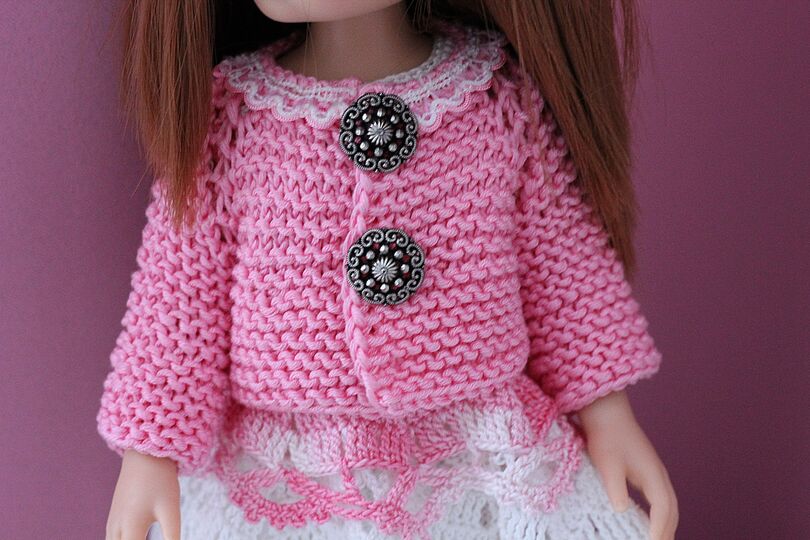 Gestricktes Puppenjacke. Passend für Puppen von 32-34 cm. Ein ideales Geschenk für die Tochter oder Enkelin!