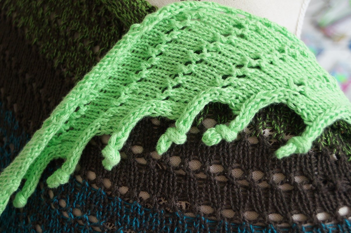 ich weiß nicht, ob hier noch jemand reinschaut. Ich bin gerade dabei, das Tuch zu stricken und komme auch mit dem I-Cord nicht ganz klar. Wenn ich alle Maschen der Franse abgekettet habe, habe ich noch 3 Maschen auf der rechten Nadel. Dann noch 4 Maschen vom Tuch abketten? Also keine 7 vom Tuch, so dass alle von der Franse abgekettet sind inkl. der 3 auf der Nadel? Dann wird das Tuch sehr schmal und sehr langsam breiter. Somit klappt der Farbverlauf nicht mehr für das Tuch.