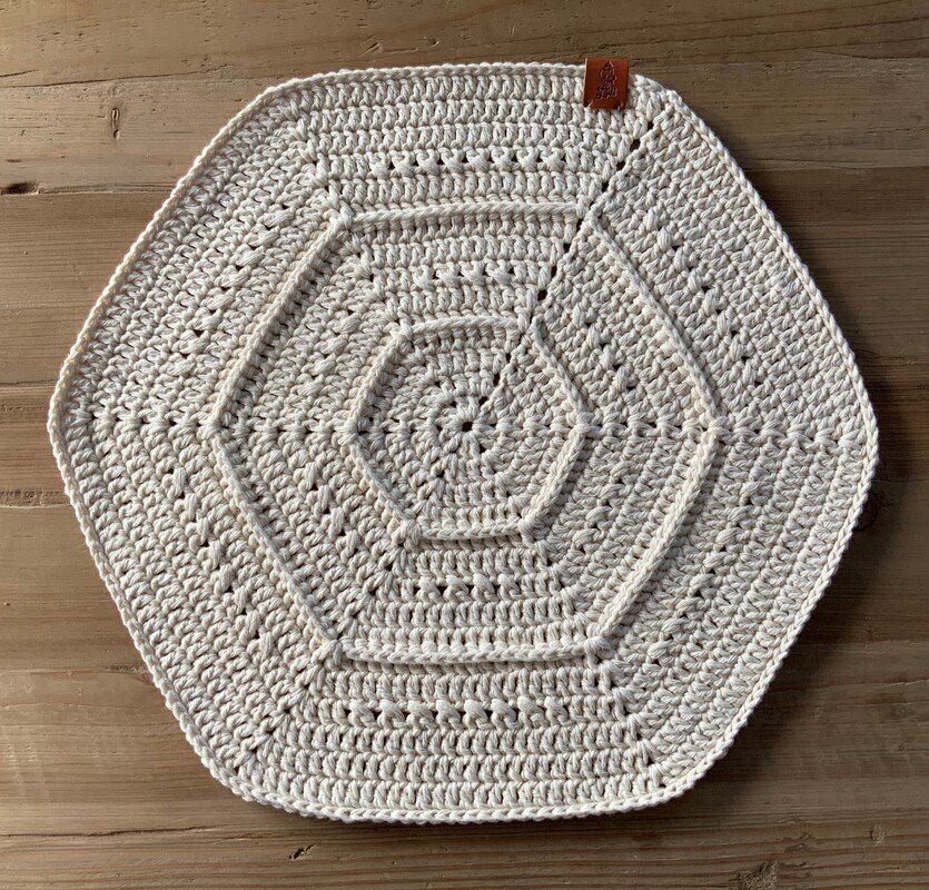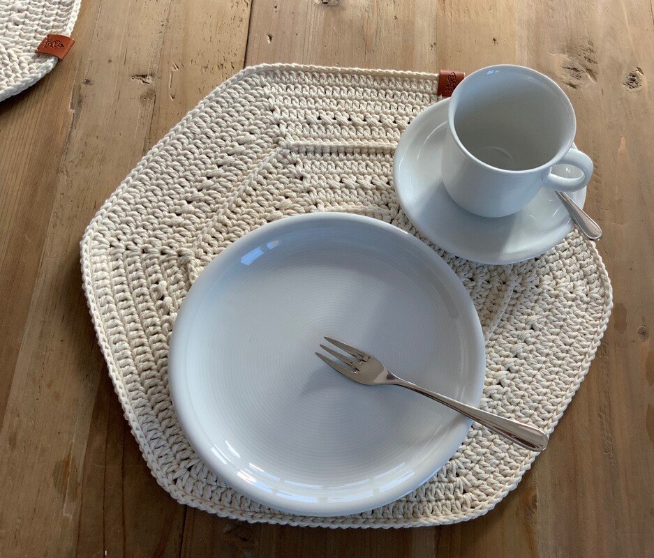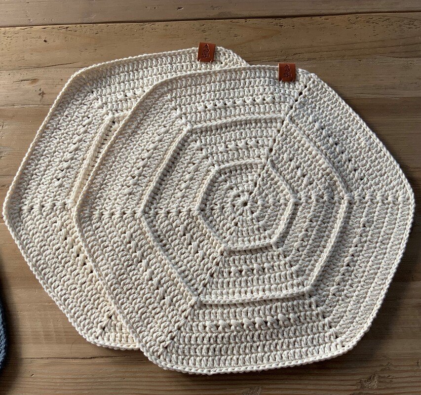 „Alix“ sind einfach zu häkelnde Tischsets mit Stäbchen und Reliefstäbchen. Je nach verwendetem Garn variiert die Rundenzahl um eine Größe von 36 cm im Durchmesser zu erreichen. Für andere Größen kann man einfach zusätzlich Runden häkeln oder weglassen.