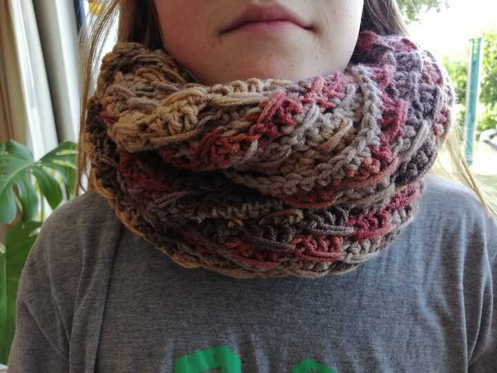 Der Loop Verwoben ist perfekt für gemütliche, entspannte Häkelabende.