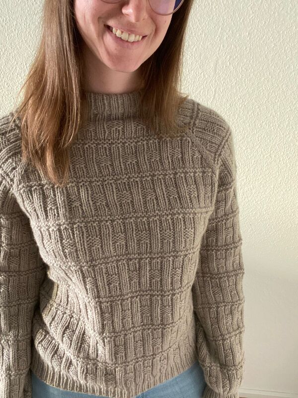 Der Woven Strands Sweater ist ein Raglan-Pullover mit Strukturmuster. Der Name ist inspiriert davon, dass das Muster an einen geflochtenen Korb erinnert.