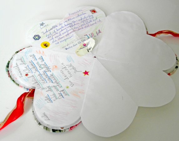 Ebook mit bebilderter Anleitung und Vorlage für ein herzförmiges Buch, das sich zu einem Kleeblatt auffaltet. Ideal als Poesiealbum oder Hochzeitssbuch