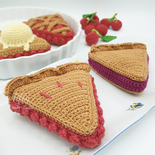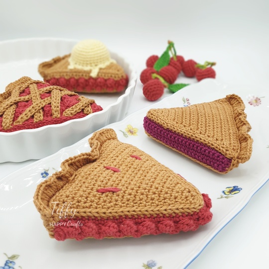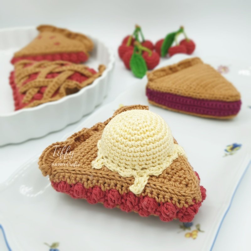 Das einfach zu befolgende gehäkelte CHERRY PIE-Muster hilft Ihnen dabei, ein wunderschönes süßes Amigurumi-Essensspielset für Ihre Kinder zu erstellen, das so tut, als würde es spielen, als Dekoration für Ihre Küche oder für Ihre Freunde.