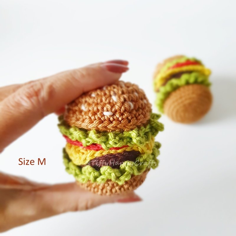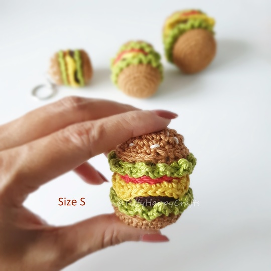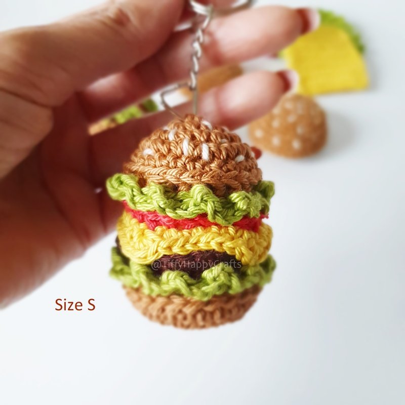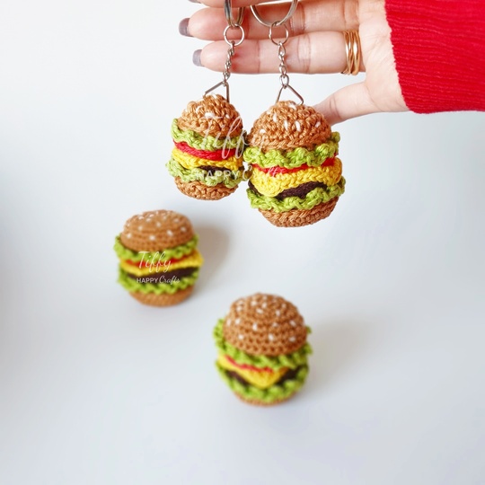 Diese Hamburger in 4 Größen sind mit vielen Fotos sehr einfach zu verfolgen. Sie können einen Schlüsselbund herstellen, ein Geschenk als Küchendekoration für einen Burgerliebhaber machen oder ein Essensspielzeug für Kinder herstellen.