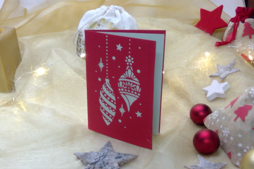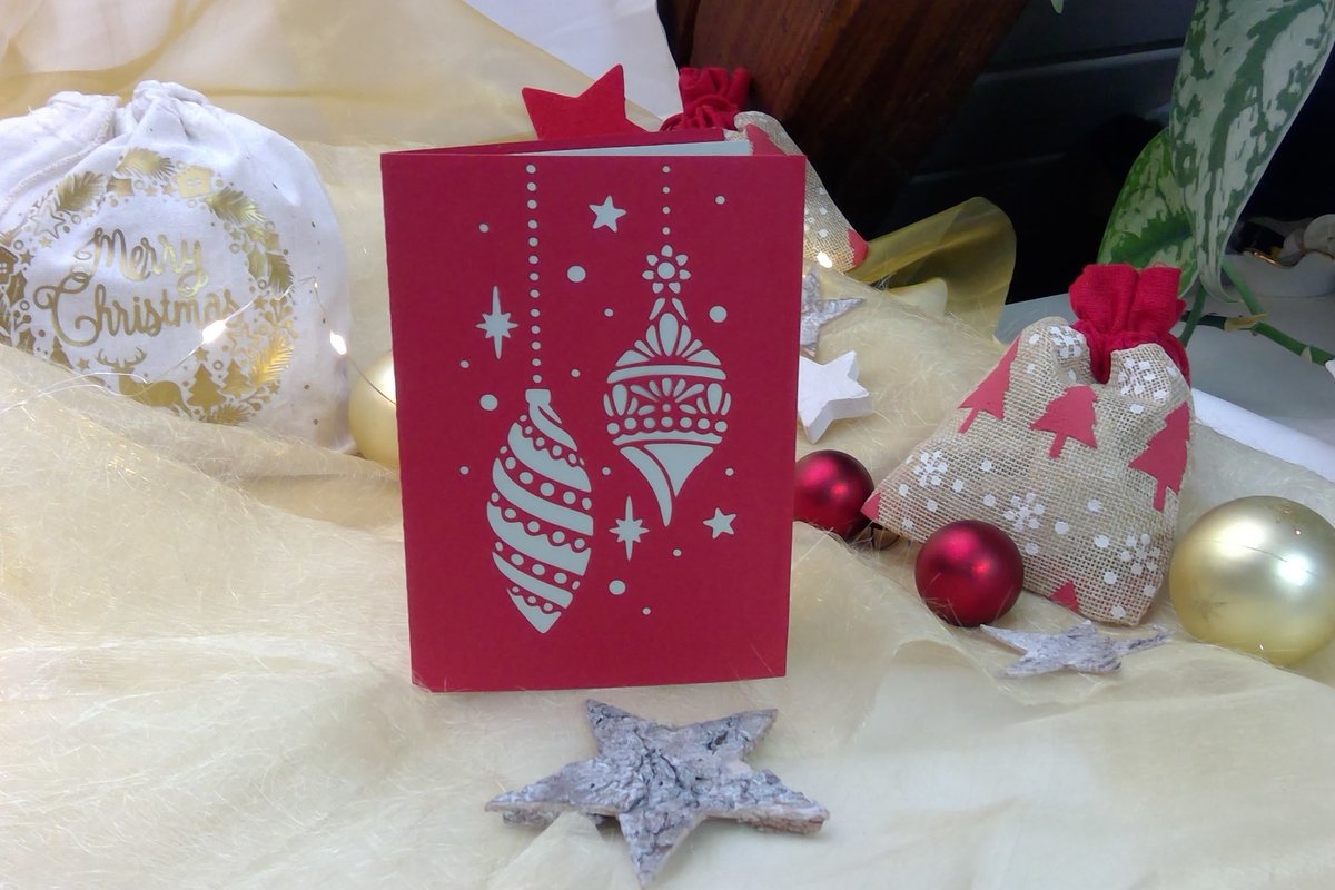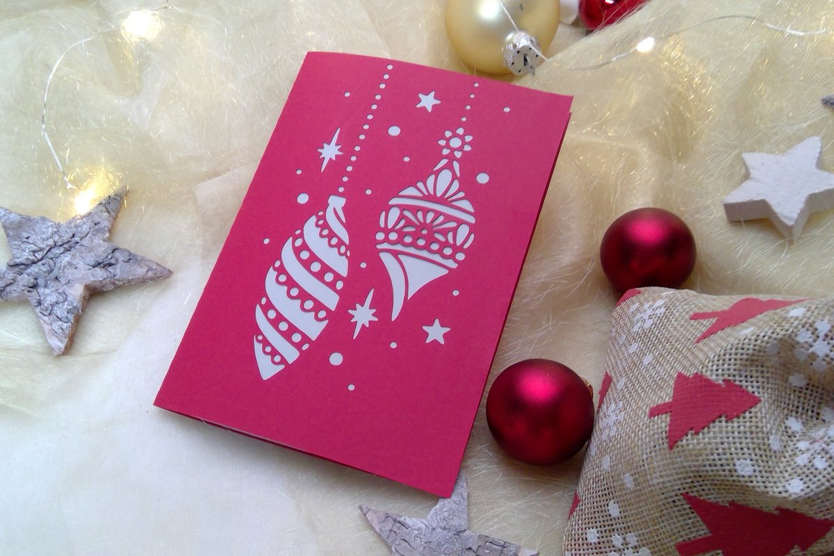 Eine schöne Plotterdatei für Weihnachtskarten mit Kugeln.