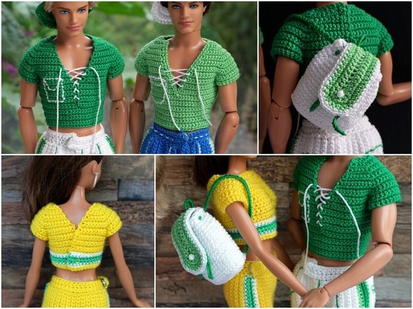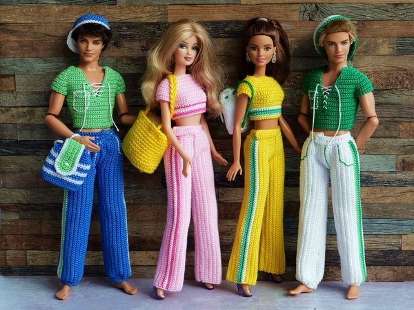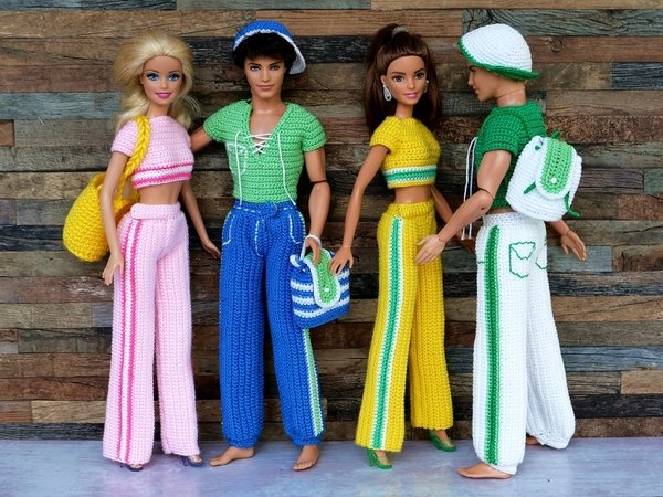 Kinder lieben es, ihre Puppen anzuziehen, mal festlich, mal sportlich. Hier kommen 7 sportliche Modelle für Damen und Herren, die unkompliziert zu häkeln sind und für die man wenig Garn braucht: