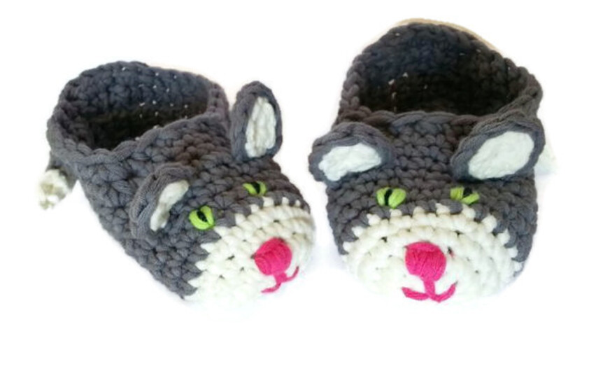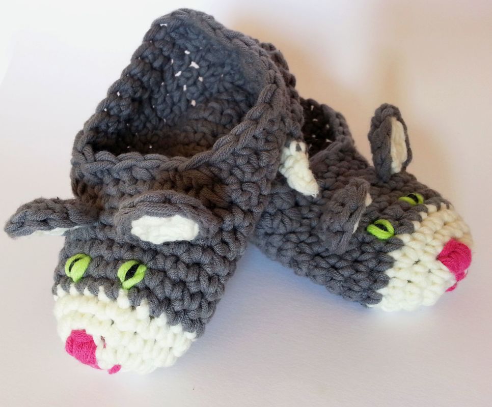 Anleitung für niedliche Kätzchenschuhe, die kleine Füße warmhalten!