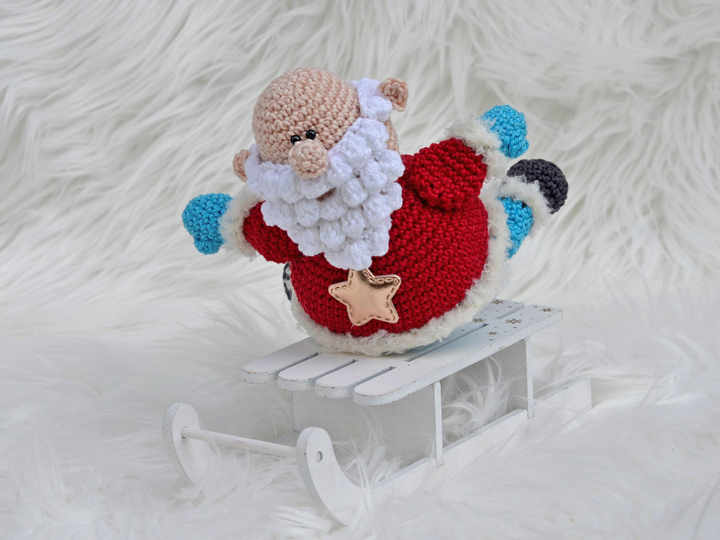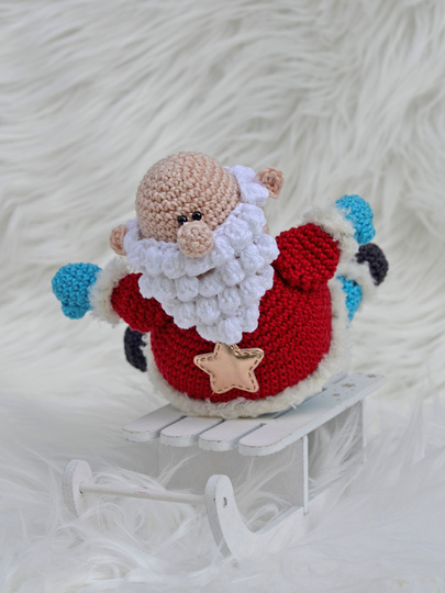 sitzender kleiner Nikolaus und liegend fliegend auf dem Schlitten