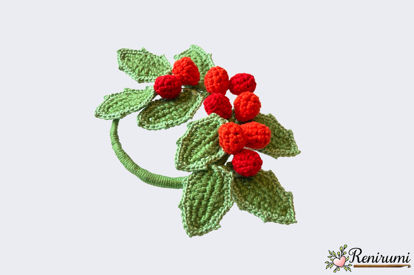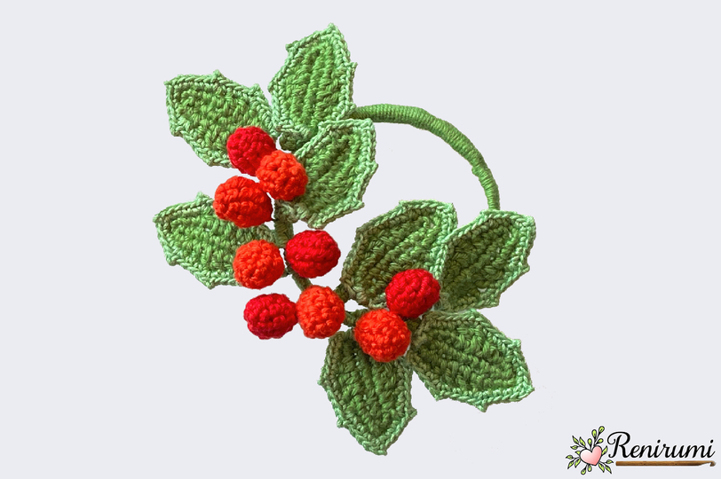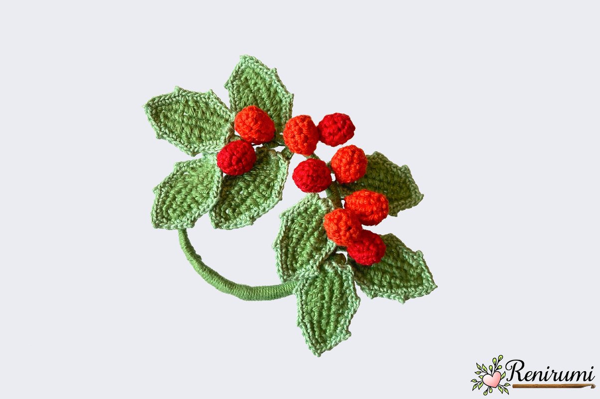 Mit dieser 5-seitigen, reichlich bebilderten Häkelanleitung kannst du diesen kleinen hübschen Ilexkranz sicher und einfach nachhäkeln.