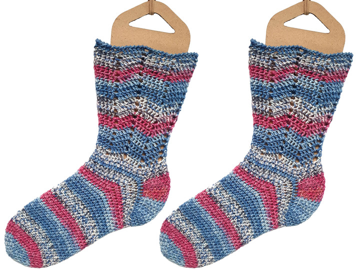 Mit dieser Anleitung zeige ich dir, wie du die Häkelsocken „Auf Zack“ selbst häkeln kannst.