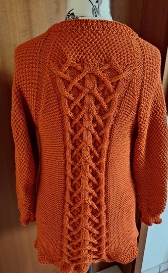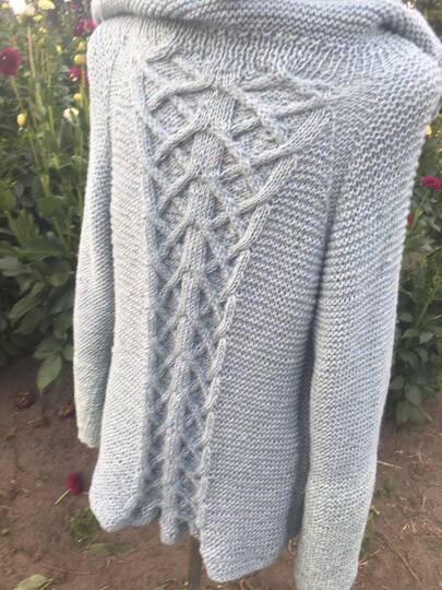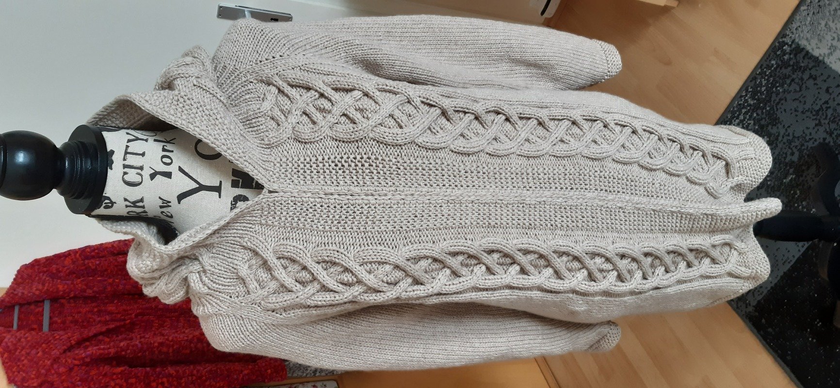 Diese Jacke kann von der kleinsten Damengröße bis hin zur größte Größe gestrickt werden.