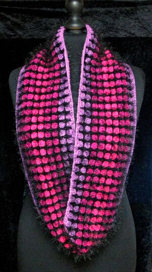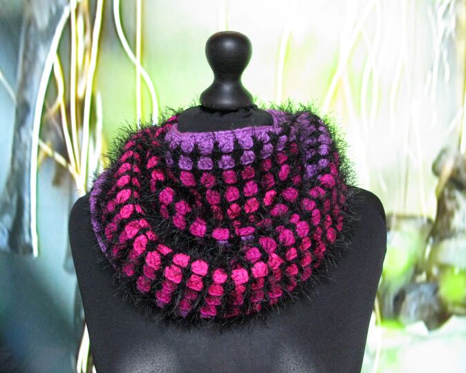 Dieser farbenfroher Loop wird in Runden gehäkelt.
