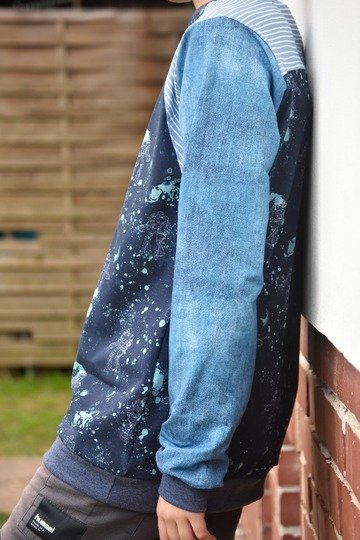 Ideal ist er aus Sommersweat nähbar, aber auch Jersey oder Strickstoffe sind möglich – wichtig nur: der Stoff sollte dehnbar sein.