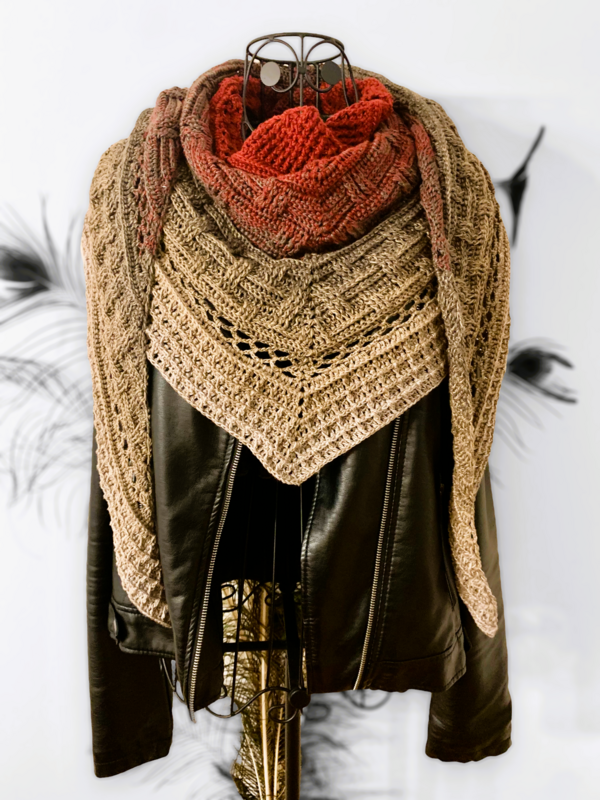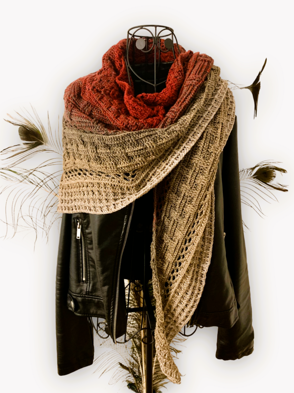 Das auf den Bildern gezeigte Tuch hat folgende Abmessungen: 195 x 70 cm. Das Tuch kann kleiner gehäkelt werden, wenn du es größer haben möchtest kannst du einfach eines der Reliefmuster nochmals häkeln (du musst dabei nur darauf achten, in der Mitte symmetrisch zu arbeiten - ich helfe hier auch gern weiter).