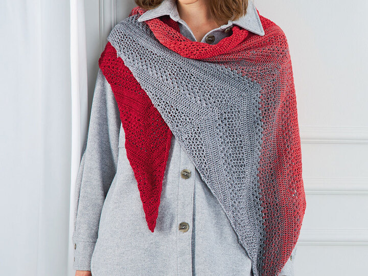 Es ist immer elgent, die Farben Grau mit einem Kontrast zu kombinieren. Hier ist es ein Kräftiges Rot mit einem schönen Häkelmuster.