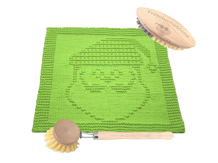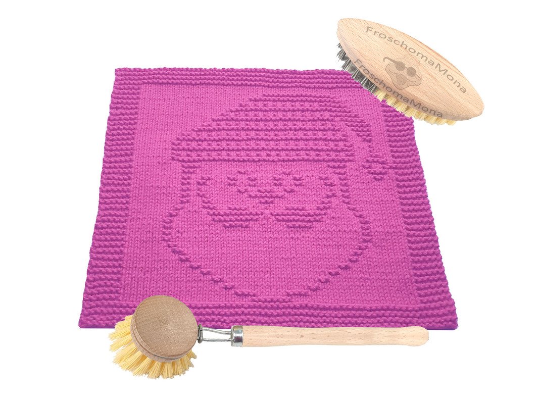 Neben der Anleitung bekommst du noch Vorlagen für verschiedene Banderolen zum Ausdrucken, falls du das Spültuch verschenken möchtest.
