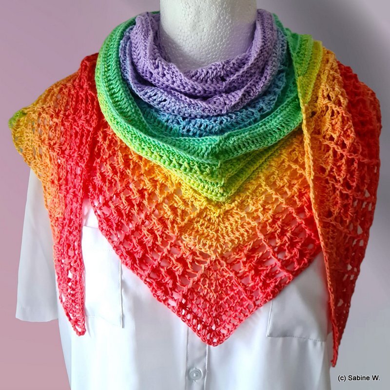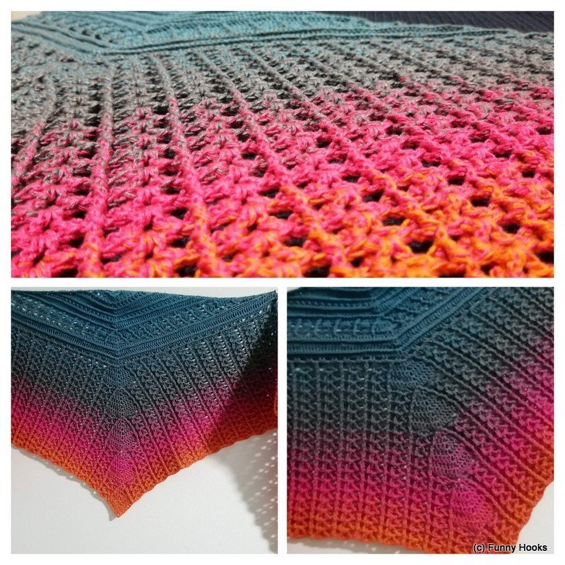 In der Facebook Gruppe - "Funny Hooks" - Mach dir die Welt mit jedem Stück ein bisschen bunter" findest du viele verschiedene Versionen des Tuchs. Das kreative Testerteam war hier besonders fleißig und so hat man verschiedene Optionen, welche am Ende der Anleitung auch vorgestellt werden.