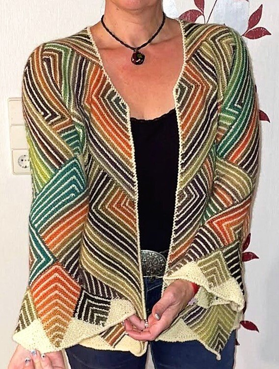 Karlos ist ein PatchArt-Cardigan der besonderen Art. Der ganze Cardigan ist nahtlos in einem Stück gestrickt. Es werden nur rechte Maschen gestrickt. Die Anleitung ist mit sehr vielen Bildern und genauen Schritt-für-Schritt-Beschreibungen versehen.