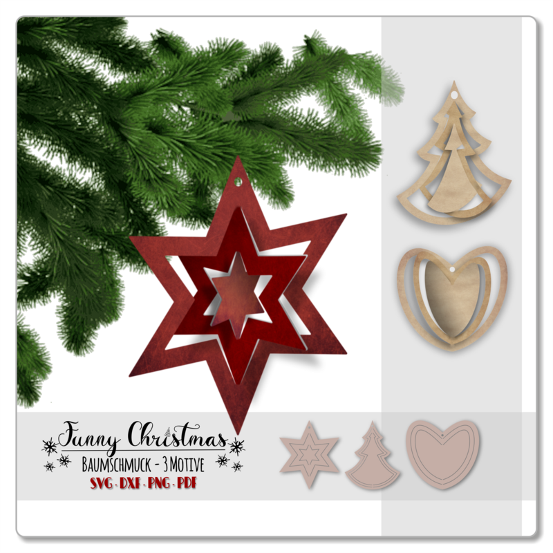 Plotterdatei aus 3 Vorlagen für den Schneideplotter um drei hübsche Weihnachtsmotive als Baumschmuck oder Windspiel zu erstellen.