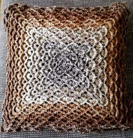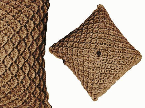 Es werden zwei Quadrate gehäkelt, die in der Mitte begonnen und in Runden gearbeitet werden. Danach werden sie zusammengehäkelt. Natürlich kannst Du die zweite Seite auch mit einem anderen Muster versehen, dann hast Du ein Wendekissen. Meine Kollektion für Home-Deko beinhaltet noch weitere Kissenhüllen: https://www.crazypatterns.net/de/users/collections/SanukDesignbyKP