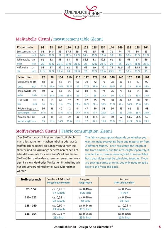 Der Schnitt ist komplett mit Nahtzugaben und in Deutsch -Englischer Beschriftung und Anleitung