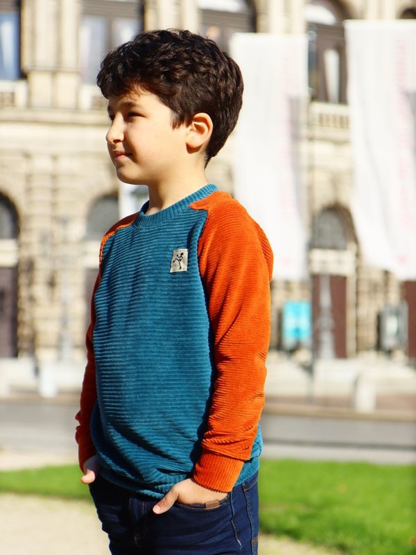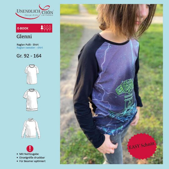 Kinder Pulli/ Shirt Glenni von Gr. 92 - 164 mit einer ganz speziell geformten Raglan- Naht, die besonders schön zur Geltung kommt, wenn die Ärmel aus einem Kontraststoff gearbeitet werden.