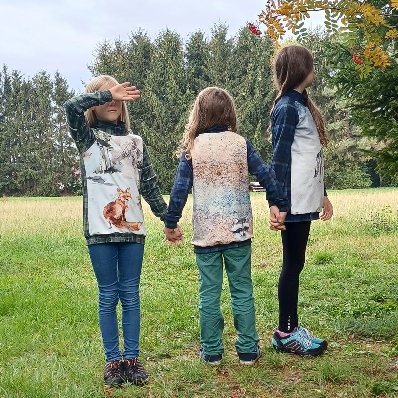Mit den mit den im Schnitt enthaltenen zwei verschiedenen Ärmellängen (Lang- und Kurzarm), Halsbündchen oder hohem Kragen ergeben sich weitere Variationsmöglichkeiten, die den Schnitt unglaublich vielseitig einsetzbar und zu einem super Basic- Schnitt für das ganze Jahr machen.