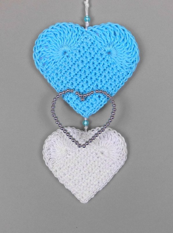 Aus den einzelnen Herzen können ganz nach Wunsch schöne Dekohänger in beliebiger Länge gemacht werden.