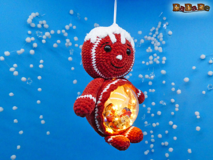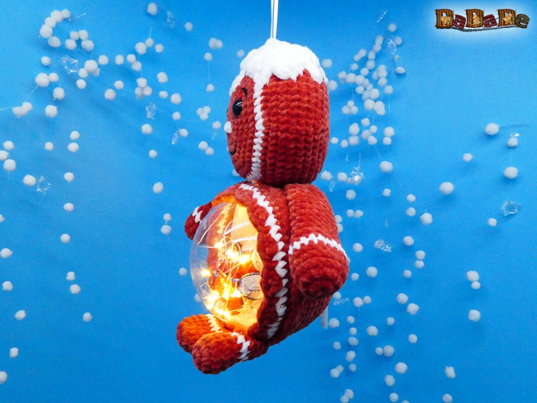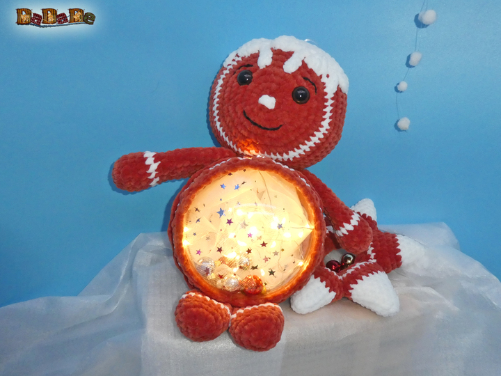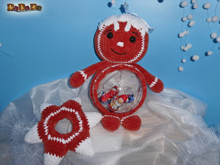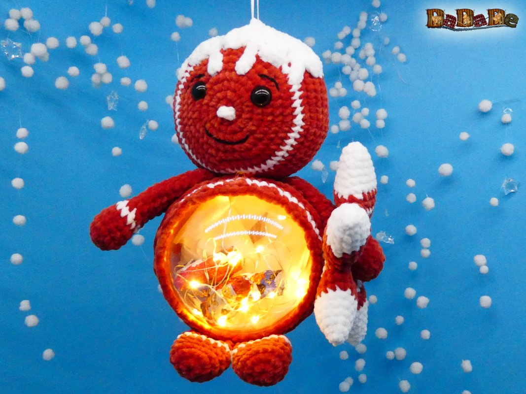 Mit der Nadelstärke 4 gehäkelt ist das Lebkuchen-Männchen ungefähr; 30cm hoch