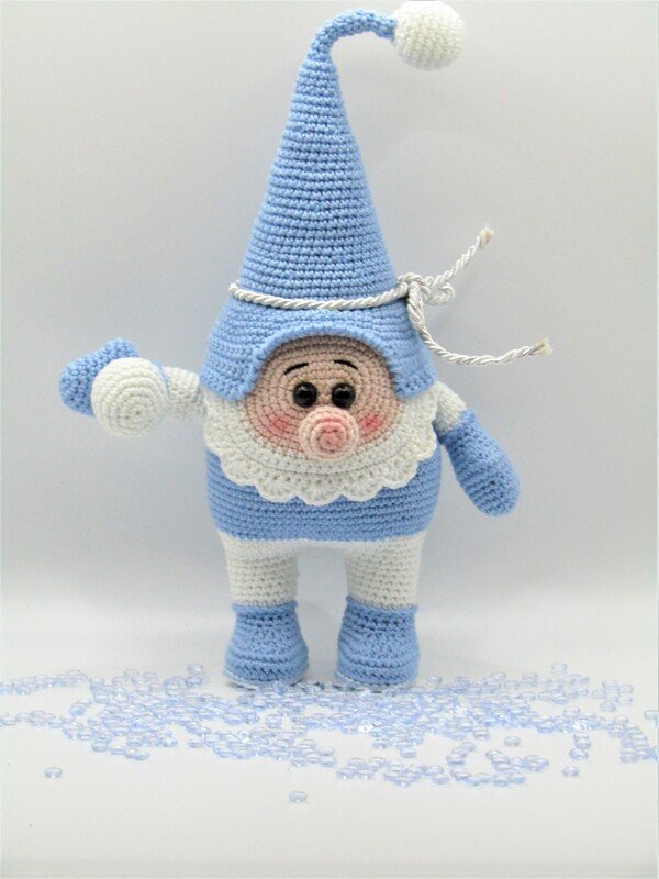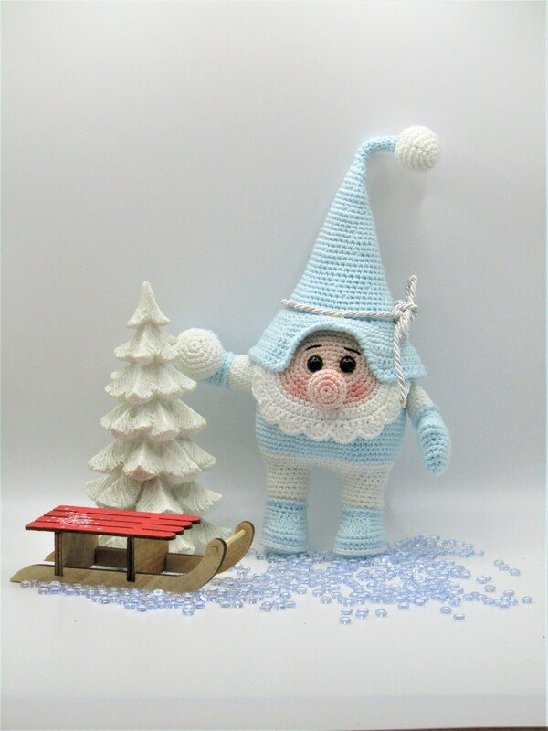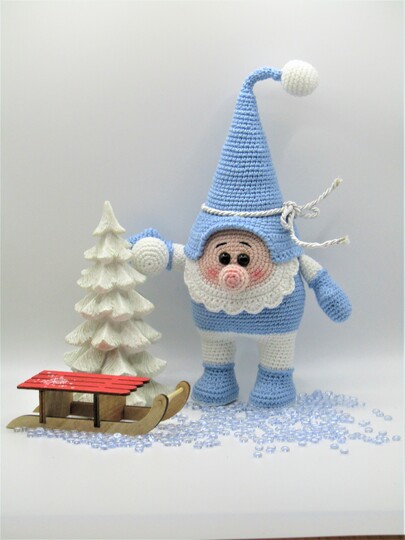In Rot Weiß gehäkelt und mit schwarzen Schuhen erhältst du auch einen tollen Weihnachtsmann.
