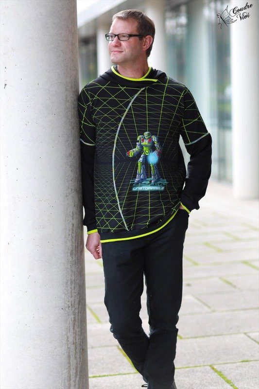 Hier geht’s los mit der Herren-Variante: MISTER MOON, den du als Hoodie nähen kannst. Weglassen der Kapuze ist auch möglich, wenn du dann ein Halsbündchen annähst hast du einen „normalen“ Pullover für den Herren.
