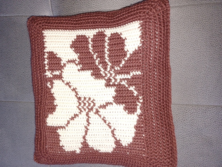 Das Kissen "Blumenblüte " ist für Tapestrybegeisterte eine tolle Anleitung, der Vorderteil des Kissens hat einen quadratischen Einsatz in Tapestry Technik.