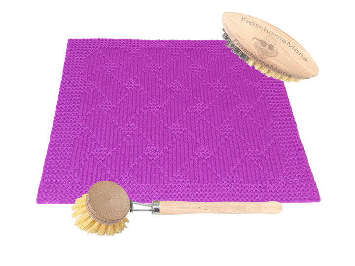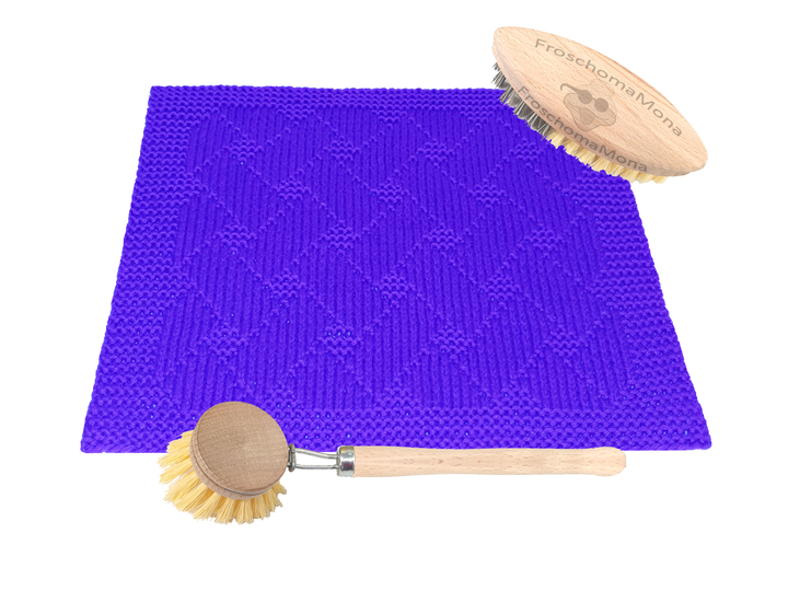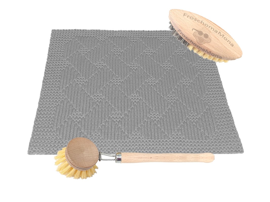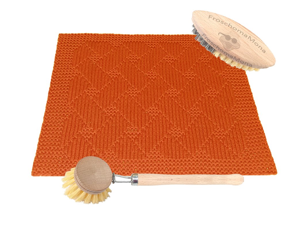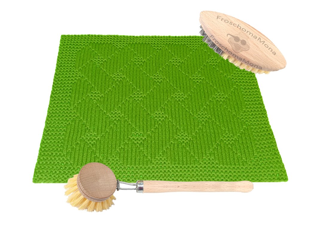 so dass es sich als Spültuch oder Waschlappen verwenden lässt.
