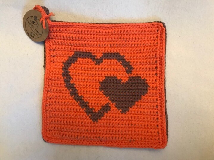 Mit der von mir angegebenen Wolle ist der Topflappen ca 20cm groß.