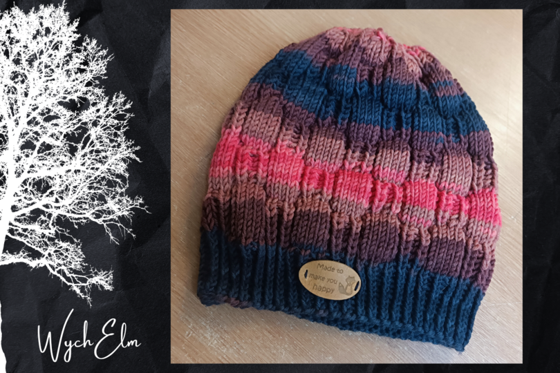 WychElm ist eine etwas längere Beanie, die durch das plastische versetzte Patentmuster eine tolle Form enthält.