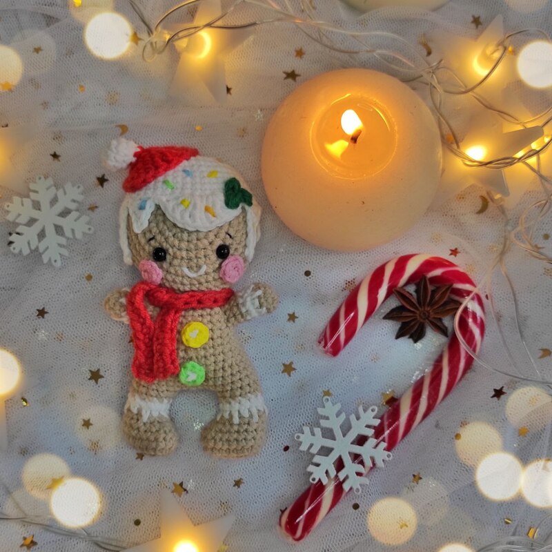 Dies ist die original Anleitung von „Keks – dem Lebkuchen-Jungen“ geschrieben und entworfen von Yevheniia Romanchuk (LovenikaDesign).