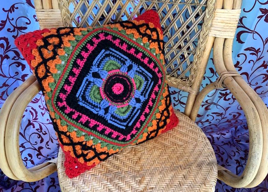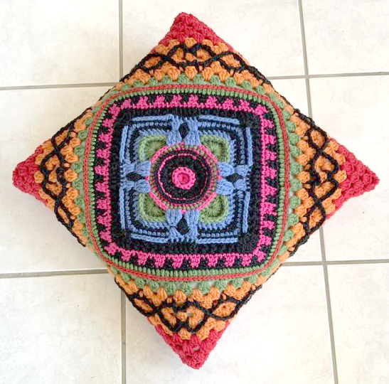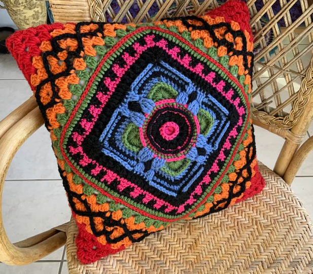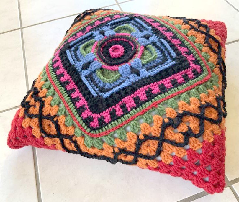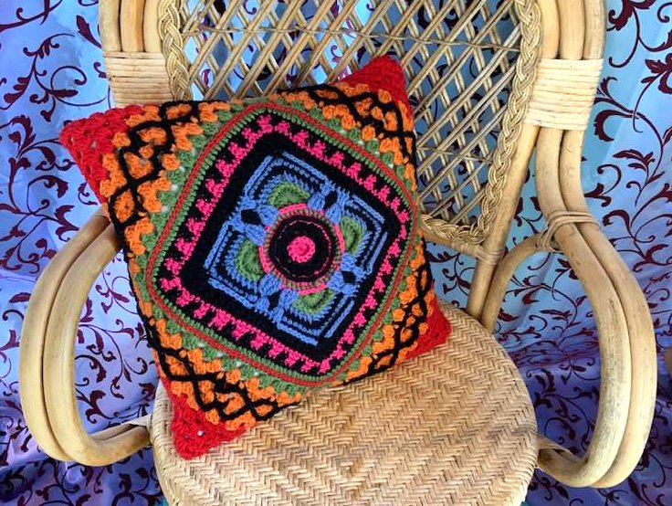 Das hübsche Kissen „GARTEN“ ist toll zu häkeln...das Kissen ist hinten zum Öffnen....so kann man auch einfach den Bezug waschen