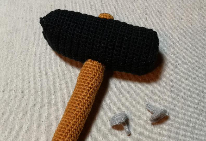 Nach dieser Anleitung könnt Ihr Hammer und Nägel häkeln, in der Größe perfekt passend zu den anderen gehäkelten Werkzeugen in meinem Shop.