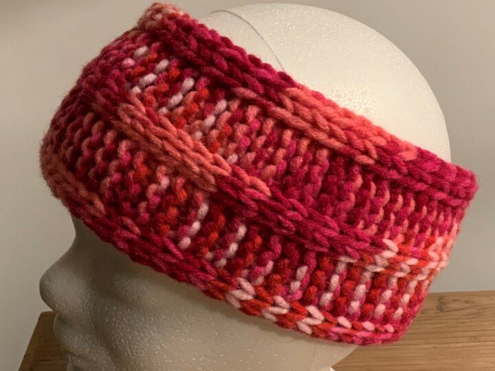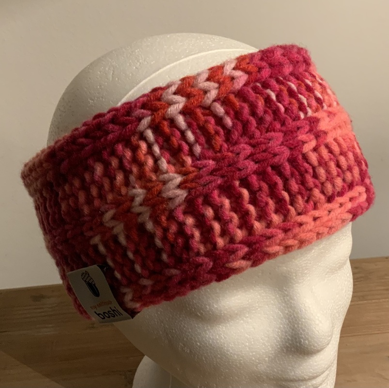 „Anjoulie“ ist ein einfach und schnell zu strickendes Stirnband. Dadurch, dass man für die verwendete Wollstärke mit recht dünnen Nadeln arbeitet, wirkt es voluminös und sitzt warm an den Ohren.