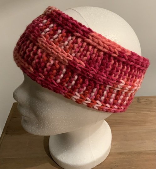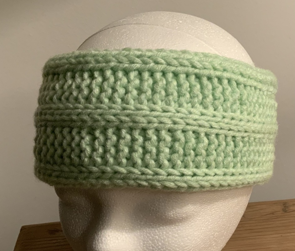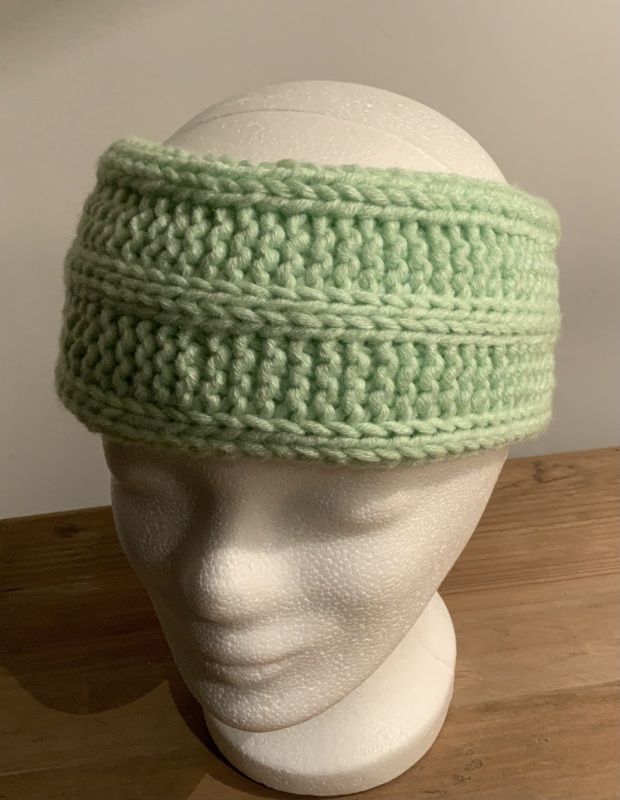 Maschenprobe: nicht erforderlich, bei der verwendeten Maschenanzahl wurde das Stirnband 9 cm breit