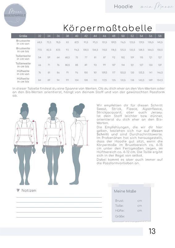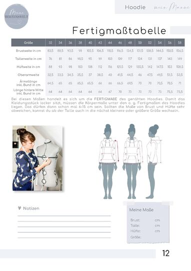 Dieses eBook Manuc beinhaltet ein Schnittmuster mit den Größen 32-58.