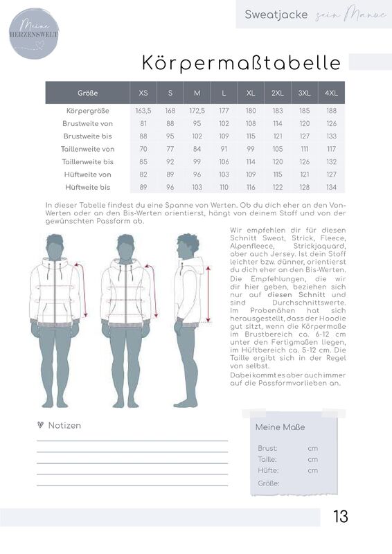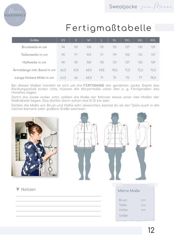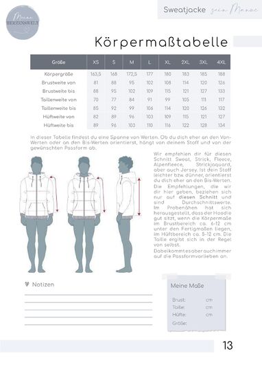 Dieses eBook Manuc beinhaltet ein Schnittmuster mit den Größen XS-4XL.