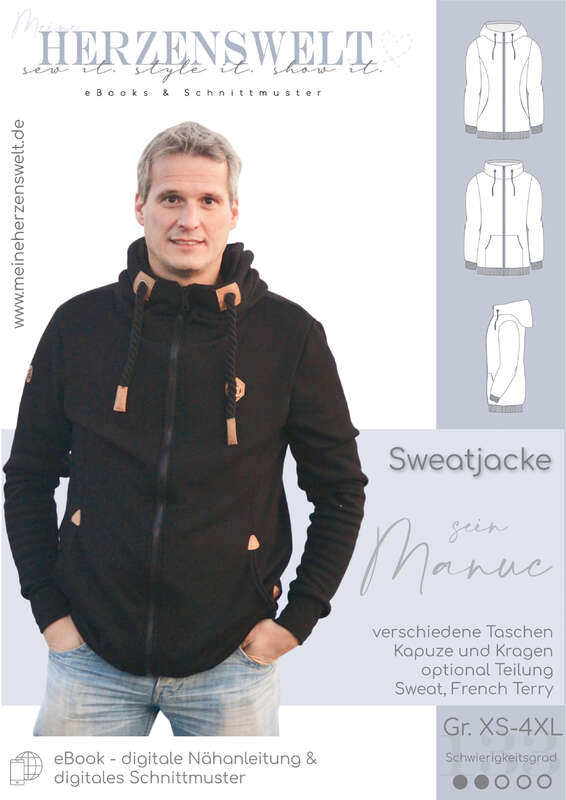 Mit unserem Schnittmuster Manuc bekommst du einen Schnitt für eine Sweatjacke.