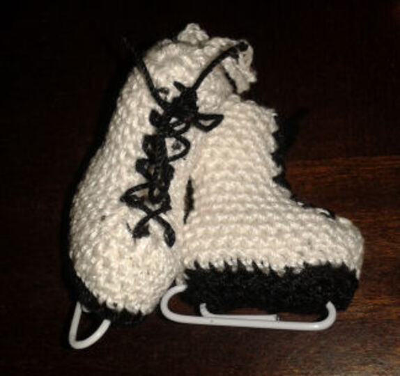 Weiß-schwarze Schlittschuhe mit scharf geschliffenen Kufen