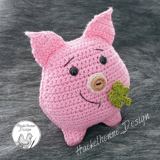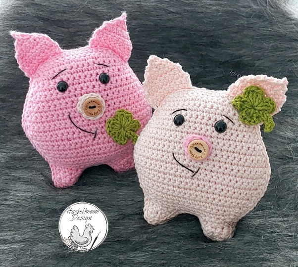 Das Schweinchen ist ein Anfängerprojekt mit etwas Erfahrung. Es wird hauptsächlch mit Lm, Km, Fm und in Reihen gehäkelt. Du solltest das Ab.- bzw. Zunehmen von Maschen beherrschen. Einen MR und das Häkeln von Stb benötigst du nur für das Kleeblatt.